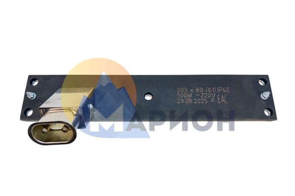 Габаритные размеры нагревателя — 303×60 мм. Мощность — 0.5 кВт, расчетное напряжение сети — 220 В. Нагреватель оснащен встроенным разъемом для подключения шнура питания.